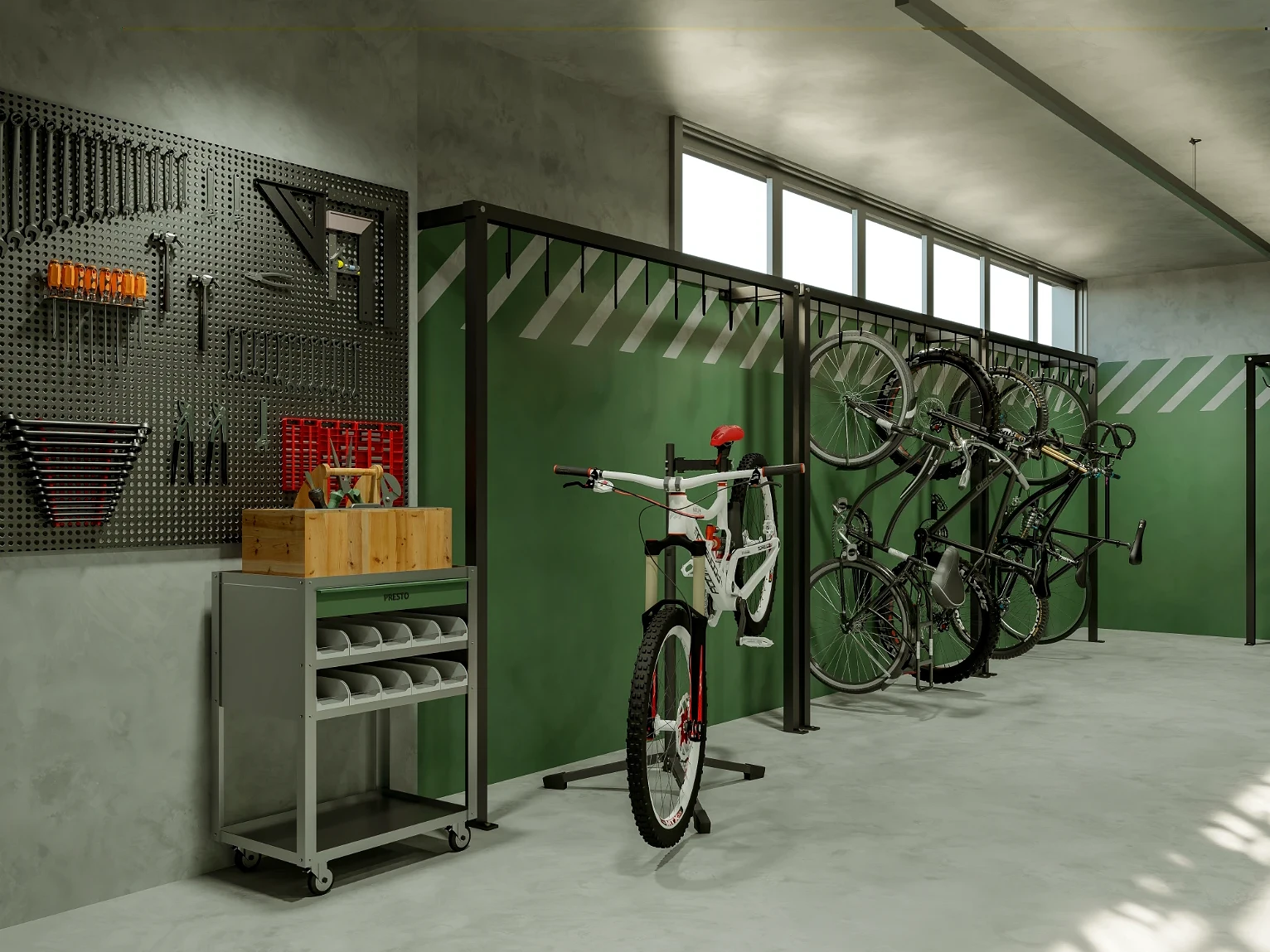 Bicicletário com ferramentaria e